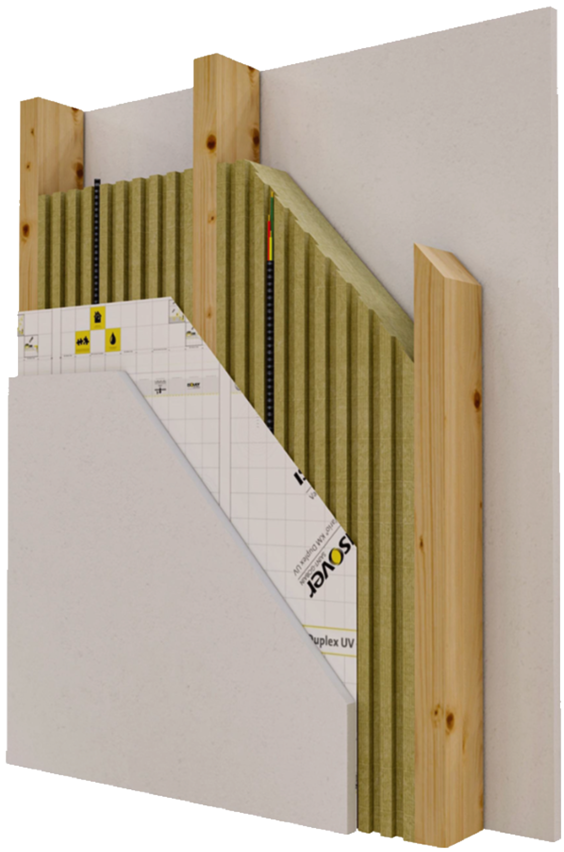 • Eine zusätzliche Schicht aus Holzfaser- oder Mineralwolldämmung sorgt für noch besseren Wärmeschutz und schützt die Wand vor äußeren Einflüssen.