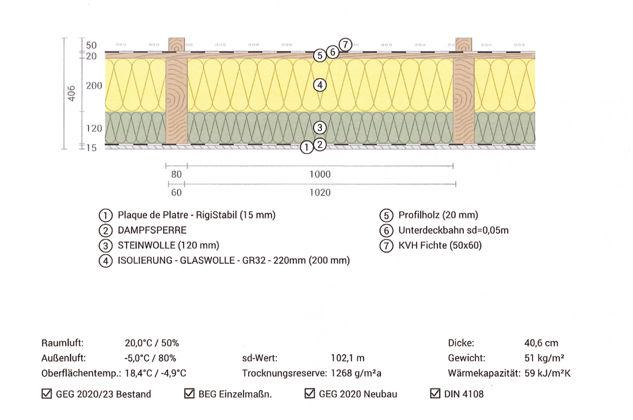 • Langfristiger Schutz: Dampfbremse und Dämmmaterialien schützen die Konstruktion vor Feuchtigkeit und Schimmelbildung.
